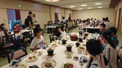 豪華メニューのお食事に,またまた大興奮の子どもたちです。タコ飯,タコの唐揚げ,タコのソーメンサラダとタコづくしでした。タコ飯のおかわりし放題の幸せに浸る子もいました。