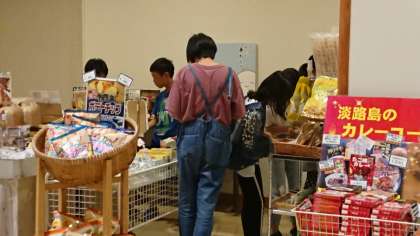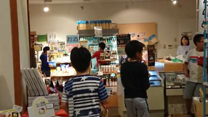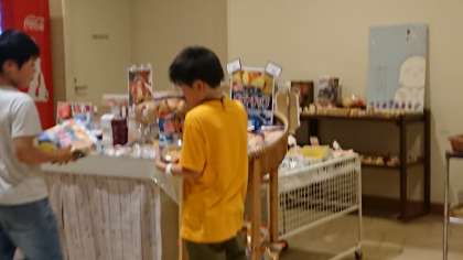 お土産を買うグループとお風呂に入るグループに分かれて活動中です。おうちの方に,きょうだいに,何を買おうか迷っています。