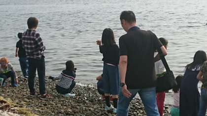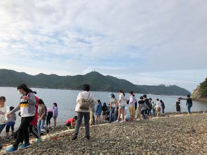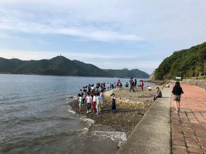 よいお天気なので,みんな嬉しそうです。早速,靴が波に洗われた?子もいます。