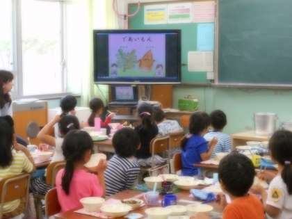 子どもたちは「であいもん」について知ってから給食を食べました。