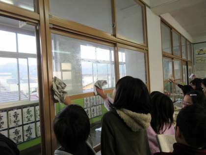 窓を拭きおわった後見てみると,見違えるほどきれいになりました。