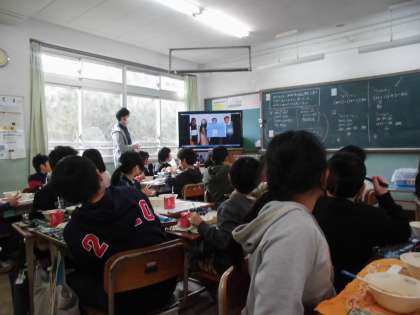 給食時間には,グルメ委員会が考えた給食クイズを動画で見ました。火曜日の三択クイズは「今日の給食に使われている旬の食べ物はどれでしょう?」でした。教室で盛り上がっていました。
