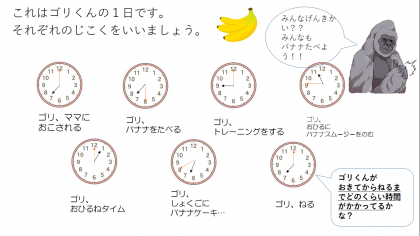 今日は,2年生で学習する時こくと時間です。