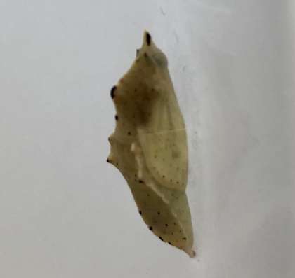 下のようにサナギの表面にはうっすらとチョウの羽が透けて見えてきましたよ!!