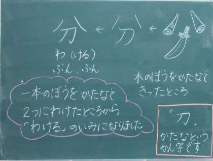 分は,1本のぼうをかたなで2つに切ってわけたところからできたのですね。