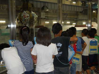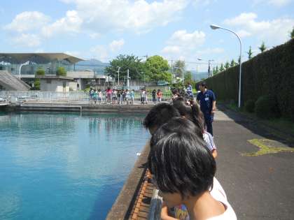 山ノ内浄水場では、琵琶湖から家庭の水道水になるまでのお話を聞き、どのように水がきれいになっているか施設内を見学しました。