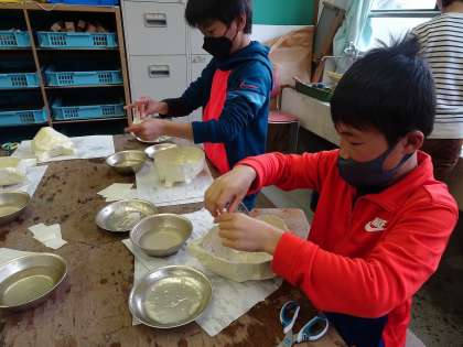 自分の考えているお面になるように,丁寧に真剣に活動していました。