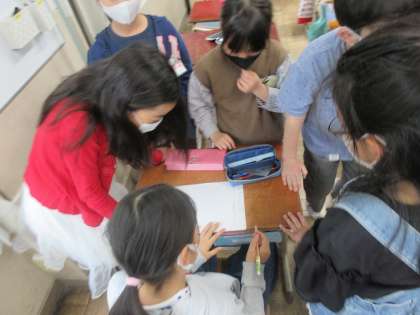 4年生で話し合って,どの場所を紹介するか考えました。司会が前に立って,賛成や反対の意見を出し合い,子どもたち自身でどこを紹介するかを決めています。場所が決まった後は,どんなことを伝えるのかをグループで相談しています。どんな発表になるのか楽しみですね。