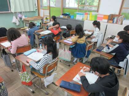 算数では『わり算』の学習を進めています。3年生の最初の山場に,子どもたちは意欲満々です。この授業では,わり算の問題作りをしました。