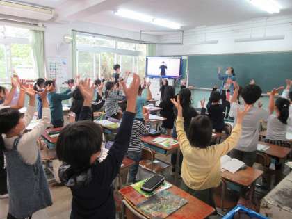 音楽に時間,なかなか声を出して歌うことができないので,手話で声を出さずに歌いました。あおぞら教室の先生に手話を教えてもらいチャレンジです。3年生はすごいです。あっという間に覚えていきました。声がなくても,ステキに表現できましたね♪