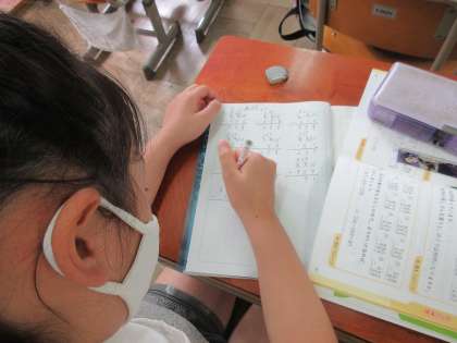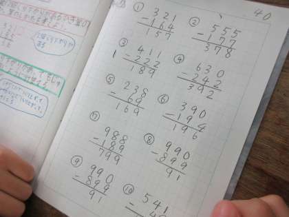 算数では,たし算とひき算の筆算に挑戦しています。2年生でも学習した内容ですが,3年生ではさらに大きな数となります。3桁の数に苦戦している様子も見られます。毎日授業でも宿題でもひたすら問題をこなします。今はしんどいですが,このがんばりはきっとみんなの大きな力となるでしょう!