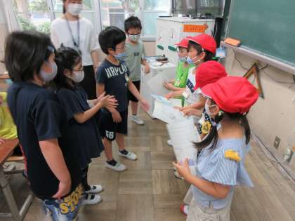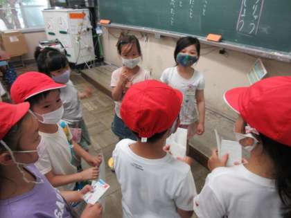 学校をいっぱい探検し,ゴールは2年生の教室です。