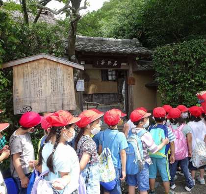 歴史あふれる嵯峨の名所を「学校へ行く道」の歌を口ずさみながら歩きました。