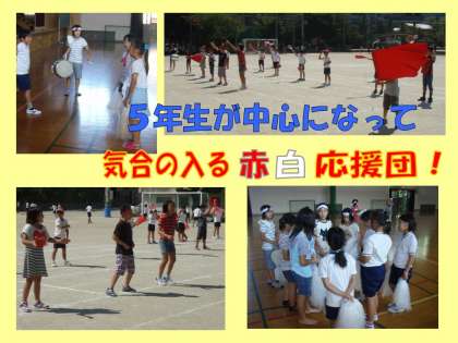 今日は,好天にめぐまれ,全校練習を行いました。入退場やキラキラ種目の練習,そして応援合戦にも熱が入りました。6年生が演劇鑑賞に出かけたので,昼休みの練習は・・・?すると,赤白の5年生が自らリーダーシップを発揮し,みさきの家から帰ってきたばかりの4年生に気合を注入するかのように自主的に練習を行いました。
