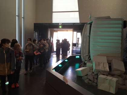 記念館の方から防災の大切さについてお話を聞き、映像から学んだり、実際に体験したりして災害について学びました。
