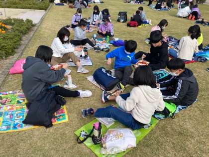 お天気を心配していましたが、青空の下美味しくいただいています。