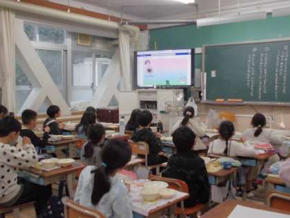 今日の給食は,ごはん・ちらしずし(具)・さばそぼろ・菜の花のすまし汁・三色ゼリーで和(なごみ)献立の日でした。子どもたちの健康や成長を願ったひなまつり献立でもありました。朝から「ちらしずし!三色ゼリー!」と楽しみにしていた子どもたち。給食時間は黙食ですが,嬉しそうな表情で「おいしい!」の気持ちが伝わってきました。和献立の動画を見て「ひなまつり」について学びながら,いただきました。