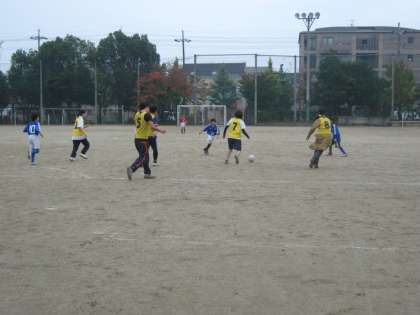 雨模様の天気でしたが,お互い必死でボールを追いかけ,時折絶好のシュートチャンスを逃しては,大声が響きわっていました。