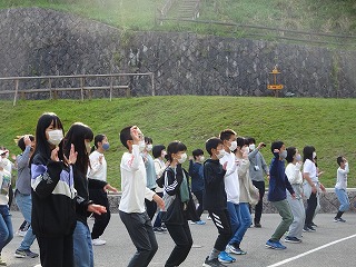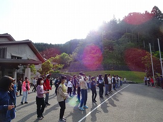 おはようございます。花脊山の家2日目の朝も素晴らしい天気でスタートです。さわやかな空気を体いっぱい吸って,みんな揃って元気にあいさつしました。