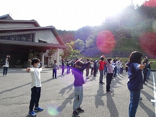 朝から元気で絶好調です。着替えや部屋の片づけを済ませ,みんなと一緒に朝のつどいです。ダンスで体を動かすと,お腹も減ってきました。もうすぐ朝ごはんです。