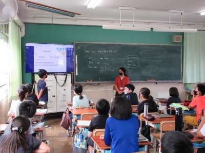 班の中で春夏秋冬,どの季節を紹介するか役割分担をして,その季節にある行事・月・できることをマスカット先生に紹介しました。できることに付け加えて,好きなものを聞いたり,自分の好きなものを伝えたりしている子もいました。