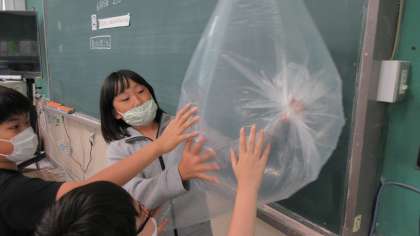 理科では『とじこめた空気と水』の単元の学習に入っています。今日は空気を袋に閉じ込めて,触った感触などを確かめました。これからどんな不思議が見つかるか,楽しみです!