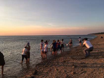 宿舎から浜辺に出るときれいな夕日が迎えてくれました。