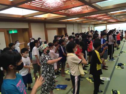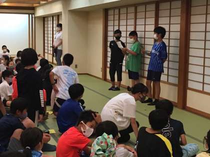 お風呂も入ってさっぱりした後は、みんなでレクリエーションです。クイズやダンスで盛り上がっています。