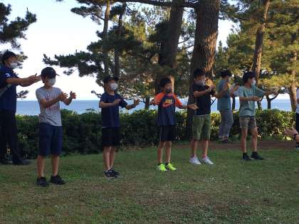 朝のつどいです。昨日の夜はぐっすり寝てみんな元気そうです。