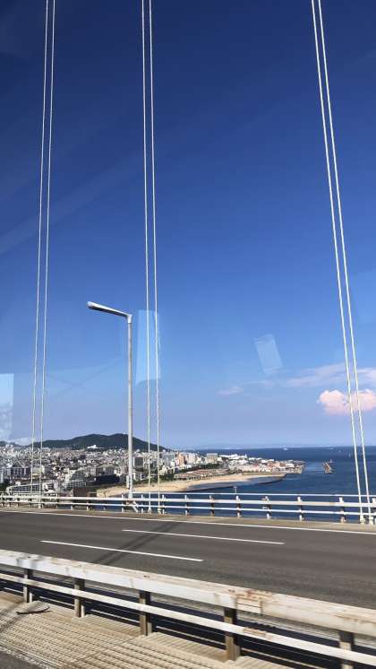 明石海峡大橋を渡り、学校へ向けて出発です。