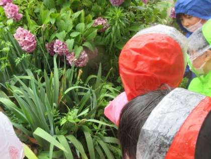 かっぱに長靴としっかりと準備をして,雨の日の様子を見に行きました!!