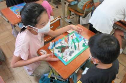 5年生が図画工作科で作った作品「わくわくプレイランド」を、1年生がゲーム感覚で楽しみました!!