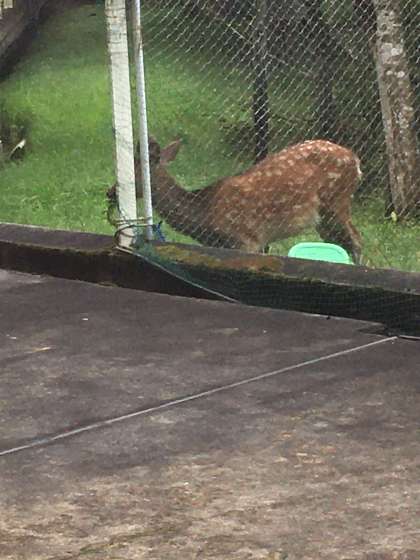 食事をしていると「あそこ見て!」と子どもたちの声が聞こえます。鹿です。「かわいい!」山の家の朝は素敵な出会いから始まりました。