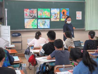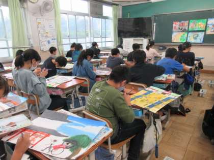 6年生は、色の使い方や塗り方を工夫して、丁寧に学習を進めていました。