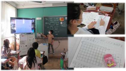 算数では、『面積』の学習をしています。広さを表す単位として、新たに【平方センチメートル】や【平方メートル】を習いました。その単位をもとに、広さを表します。