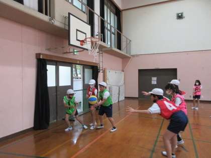 5年生で初めてバスケットボールが体育の学習で始まりました。