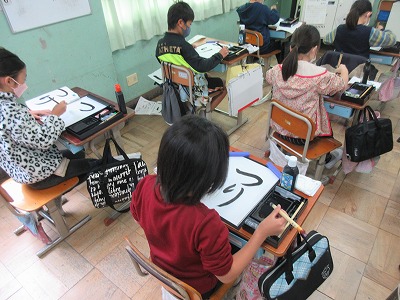 3年生は、書写の学習で「つり」を書きました。これまでは漢字を書いていましたが、今回はひらがなです。ひらがなの方が簡単そうに見えてバランスをとるのが難しいようでしたが、曲がりやはね、はらいに気をつけながら、集中して書いていました。