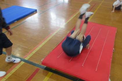 1年生の体育科では、マット運動をしています。