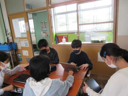 修学旅行で行くところを班でそれぞれ調べて、交流しました。おすすめポイントを伝え合う中で、楽しみがますます大きくなっている様子でした。