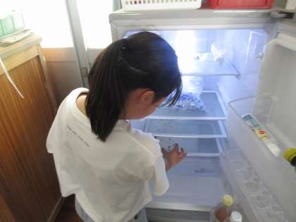 やる気たっぷりで理科室の冷蔵庫に急ぎ足で向かいました。