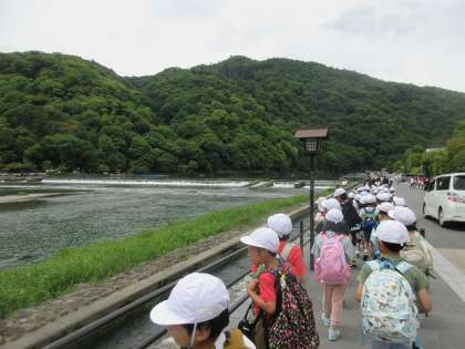 子どもたちは最初こそ驚いた様子でしたが、じょじょに慣れてきて、道行く外国人の方に「ハロー!!」とあいさつしたり、修学旅行生に手をふったり、とても楽しんでいる様子でした!!