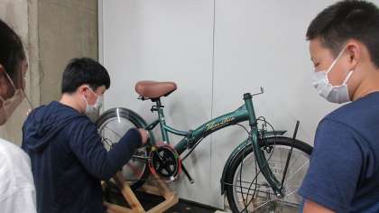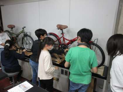 身近にある自転車はどのように作りになっているのか、変速機の仕組みや車輪にゴムがついているのはどうして?など実験を通して、学習しました。