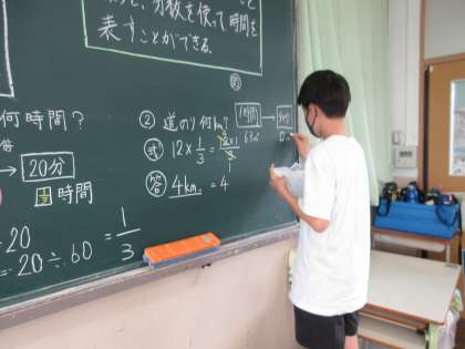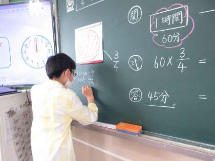 自分の考えを伝えることは、どんな場面でもとても大切です。言葉でも文でも式でも図でも、どんな考えがあったのかを伝えることで、そこに学び合いがうまれ、自分の考えも更に深まっていきます。これは、算数の一場面。しっかり自分の考えを書き上げていきます。素敵なHEROな姿です。