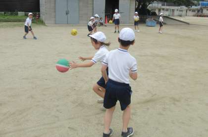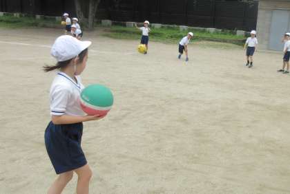 2年生の体育科では、「なげあそび」をしています。