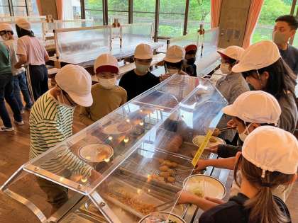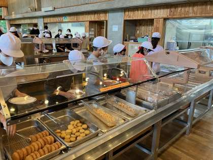 花背山の家での初めての食事です。バイキング形式で自分の食べられる分を取っていただきました。チャーハンもおかずも美味しかったですね。