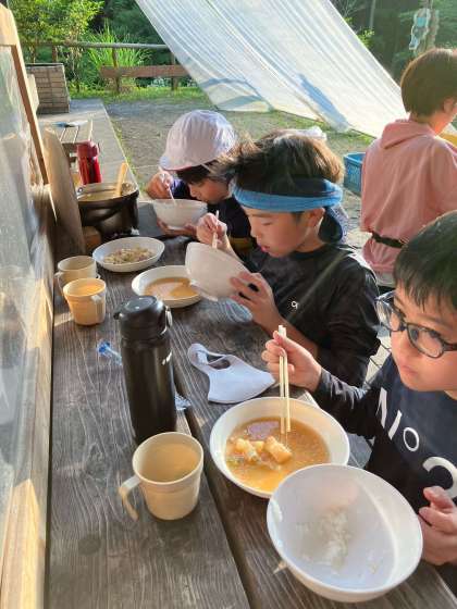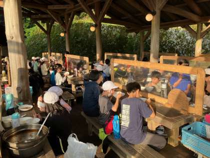 「自分たちで作ったご飯は最高やな。」「外で作って、みんなで食べるのはおいしいなあ。」