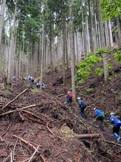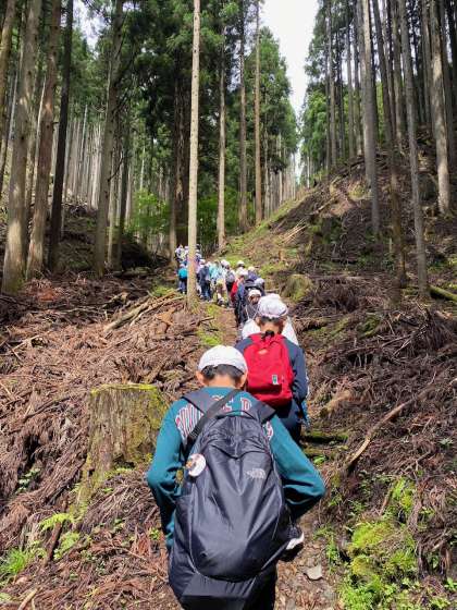 険しい山道も友だちと声を掛け合って進んでいきます。