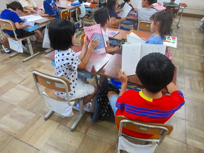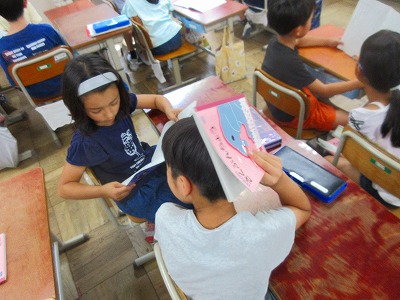 「さくぶんちょう」に書いた夏休みの思い出を、友だちどうしで話し合いました!!