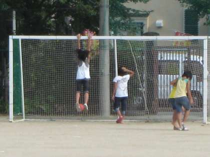 ところが,まだまだ元気のありあまっている児童は,運動場で走り回って遊んでいます。パワー全開ですね。