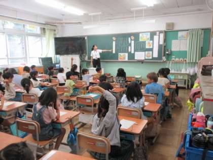 「ゆっきとやっち」のお話を通して、友だちの大切さについて考えました。「ゆっきはどんな気持ちだったかな?」「どうしてゆっきは、やっちを助けたのだろう?」場面ごとに変わるゆっきの気持ちを一生懸命考え、発表しました。子どもたちから、人を思う優しい言葉がたくさん聞けました。